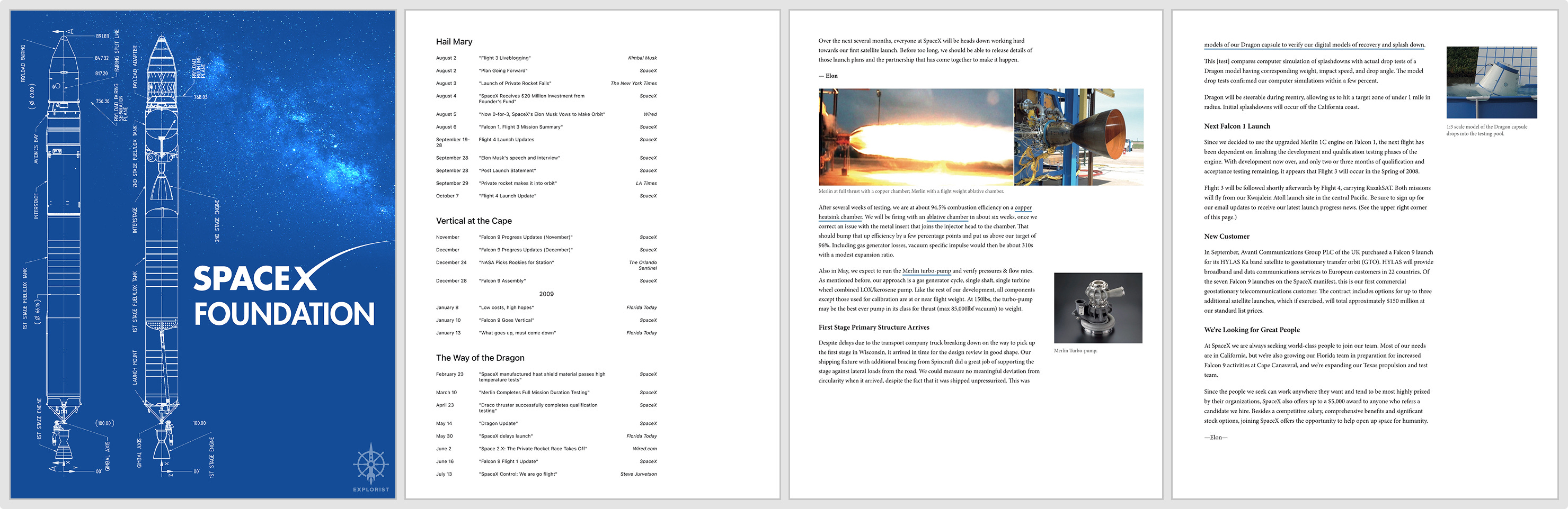Aside from my own limited time, the biggest issue right now is getting full buy-in from SpaceX. Most of the content is findable via public archives, but there’s a lot of implicitly-copyrighted photos, etc. in the content. Plus I can’t use SpaceX in the title without explicit permission, otherwise I risk legal action. I’ve shown it to a few people at SpaceX who really liked it, but needless to say they have more important things to focus on. Like making humanity multi-planetary :)