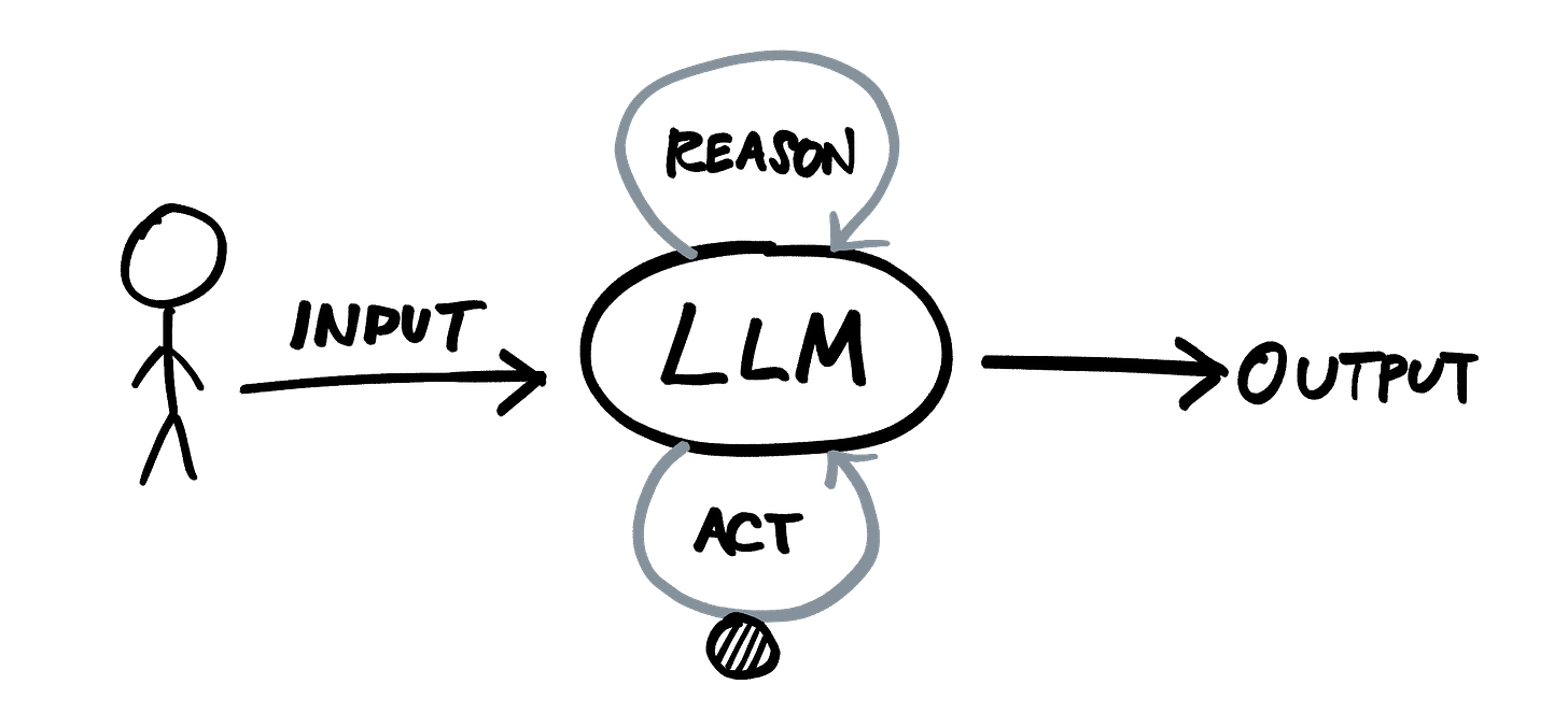The ReAct pattern proposed in this paper last year is the most basic example: to answer the original prompt, the model Reasons through chain-of-thought and is given tools it can use to take whatever Actions necessary.
